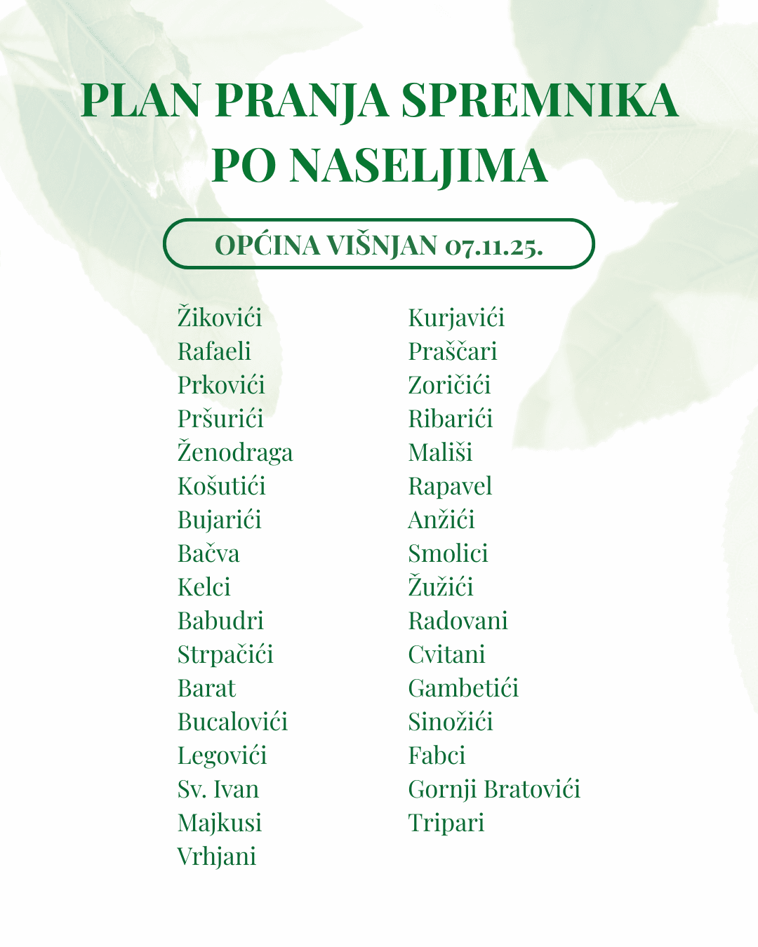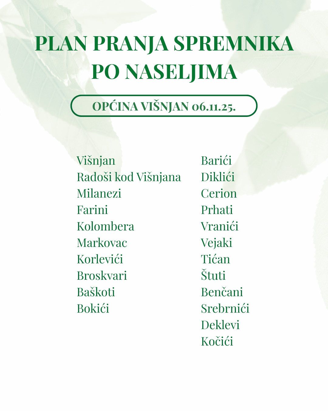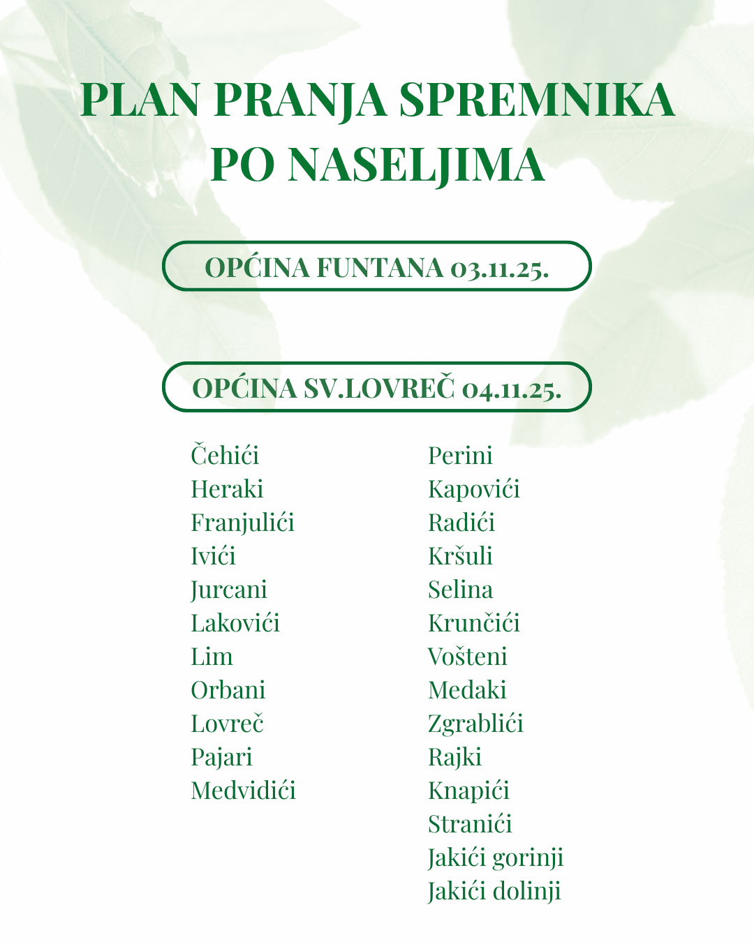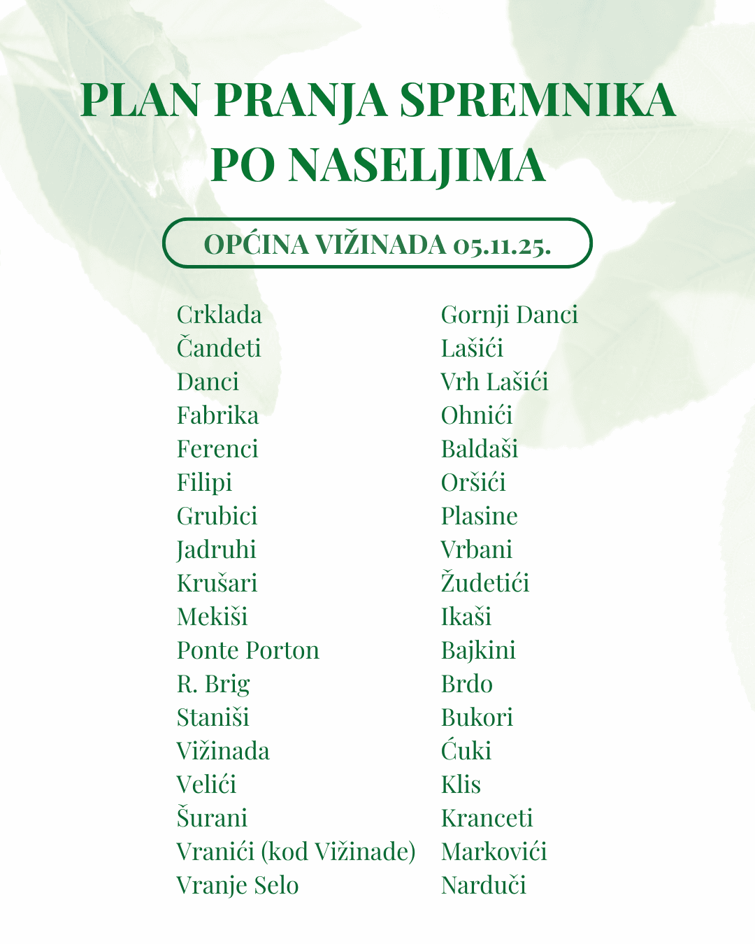 Molimo sve korisnike da pregledaju raspored i prema njemu spreme svoje spremnike na vrijeme.