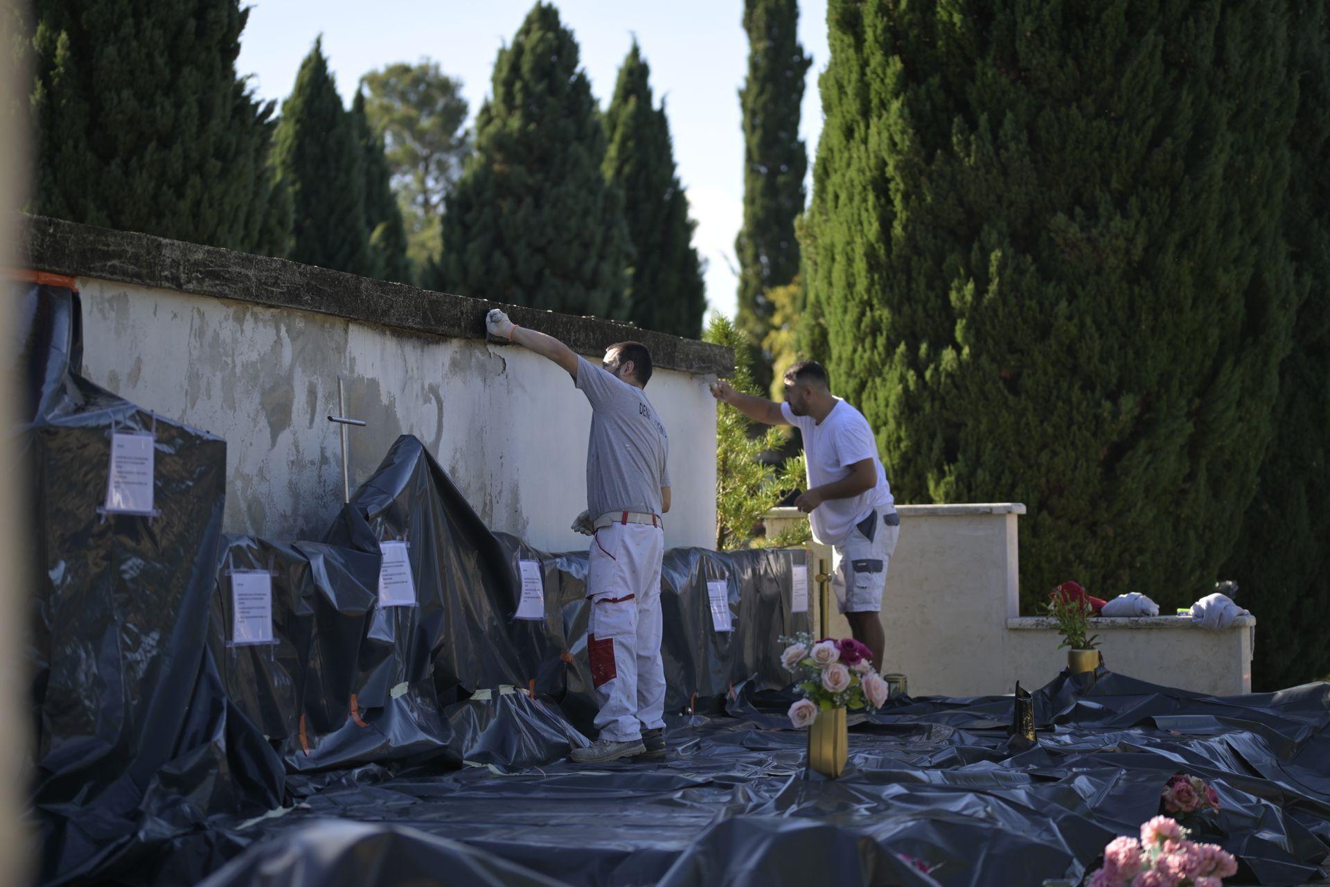Paralelno se izvode i radovi na obnovi zida gdje se uklanjaju oštećeni dijelovi, postavlja nova zaštitna mrežica, nanose odgovarajući slojevi žbuke te završno boje fasadnom i dekorativnom bojom. Tako će se oštećene površine učvrstiti, zaštititi od daljnjih oštećenja te estetski urediti, a groblje dobiti obnovljen izgled.