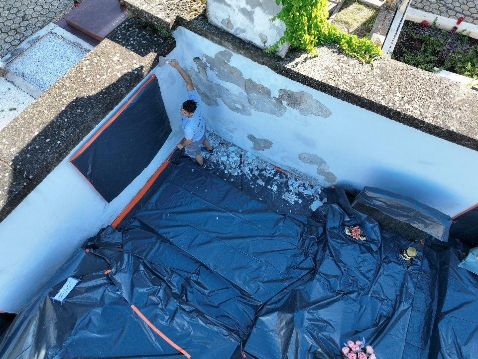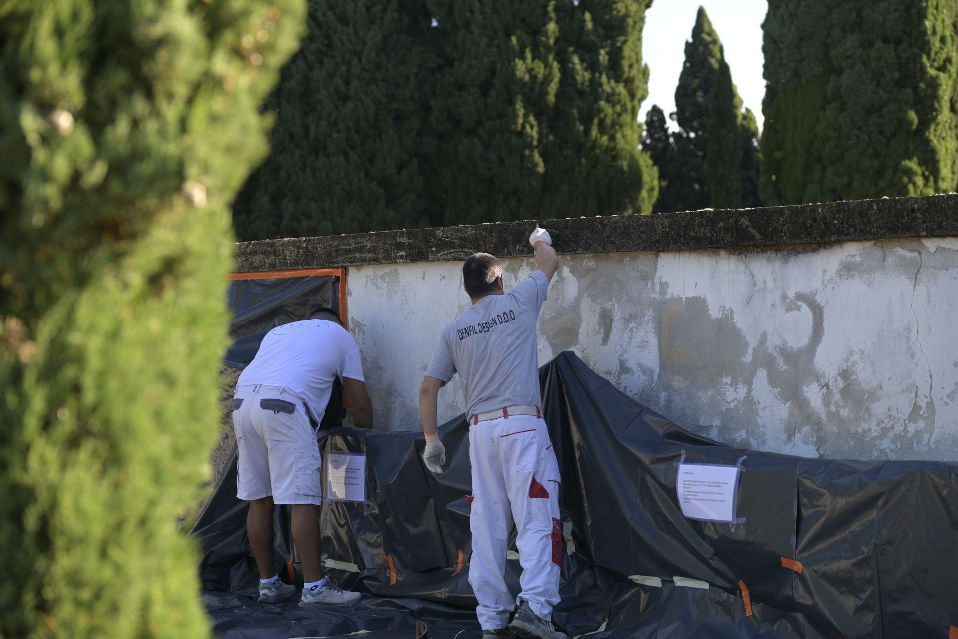 Paralelno se izvode i radovi na obnovi zida gdje se uklanjaju oštećeni dijelovi, postavlja nova zaštitna mrežica, nanose odgovarajući slojevi žbuke te završno boje fasadnom i dekorativnom bojom. Tako će se oštećene površine učvrstiti, zaštititi od daljnjih oštećenja te estetski urediti, a groblje dobiti obnovljen izgled.