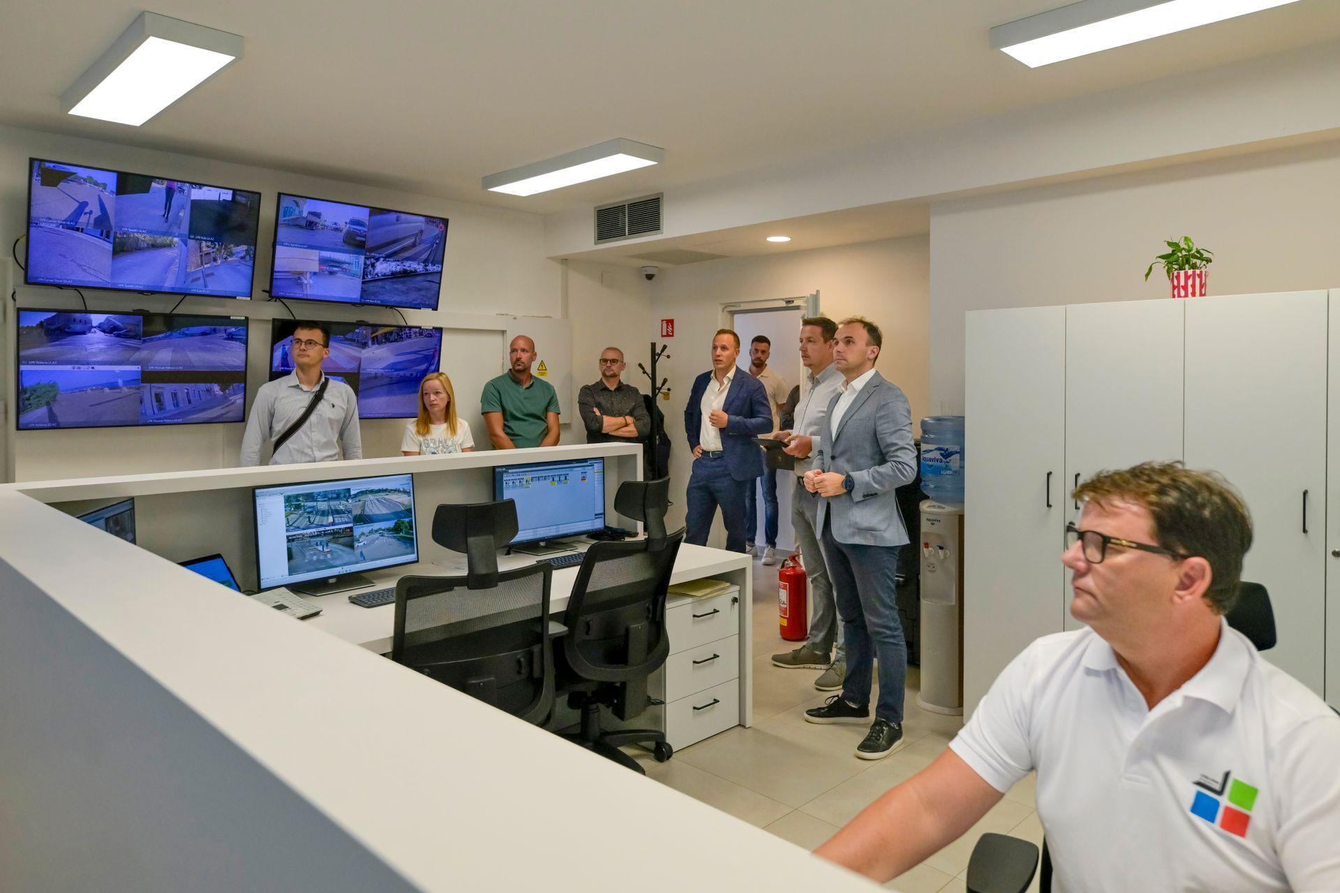 Centar, koji radi 24 sata dnevno, sedam dana u tjednu, opremljen je vrhunskom tehnologijom koja omogućuje neprekidan nadzor ključnih gradskih zona. Trenutačno je u sustav integrirano 200 kamera, a sustav je je projektiran tako da omogućuje daljnje proširenje sukladno budućim potrebama. Osim javnih površina, nadzor se provodi i nad objektima Društva, čime se dodatno podiže razina sigurnosti i zaštite imovine. Poseban iskorak predstavlja video zid površine 9,15 m2, koji se sastoji od ukupno 13 ekrana, pružajući djelatnicima pregled prometnih i sigurnosnih točaka u gradu u realnom vremenu. Ugrađeno je i pet novih računala, dva namijenjena za upravljanje video zidom te tri za rad i analizu podataka, što značajno povećava operativnu učinkovitost centra.